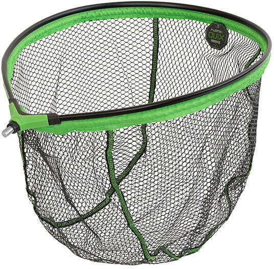Lebegő kialakítású, négyzet alakú merítőhálófej a REAXE sorozatból, könnyű, de masszív fekete alumínium kerettel. A FloateR QUIX hálója gumival borított, ezért nem szívja magába a vizet és gyorsan szárad. Ráadásul a keret alsó része teljes egészben zöld szövettel borított, a tartósság növelése érdekében.