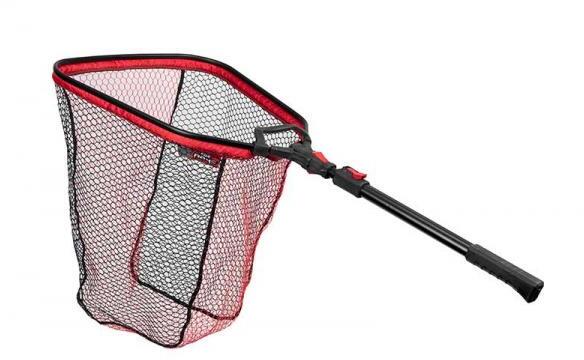 Gumírozott, halbarát háló: Kíméletes a halakkal, miközben hosszú távú használatra készült a merész Speedflow fekete és piros színvilágával együtt.