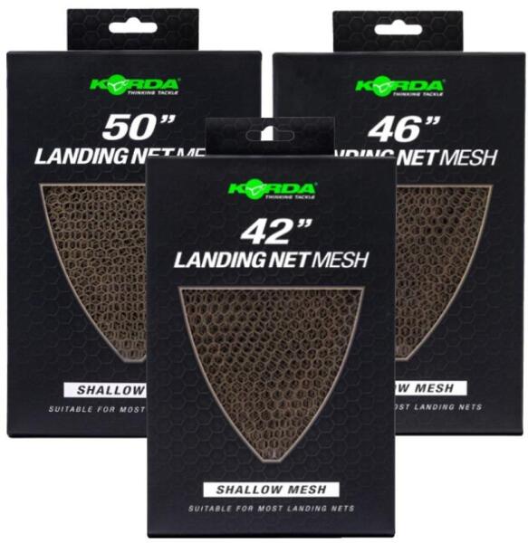 A Korda Landing Net Mesh pótháló kompatibilis a piacon kapható összes merítővel, beleértve a Korda Spring Bow merítőt. Három méretben kapható - 42 46 és 50, mindegyik puha, halbarát Hexmesh anyagból készült.